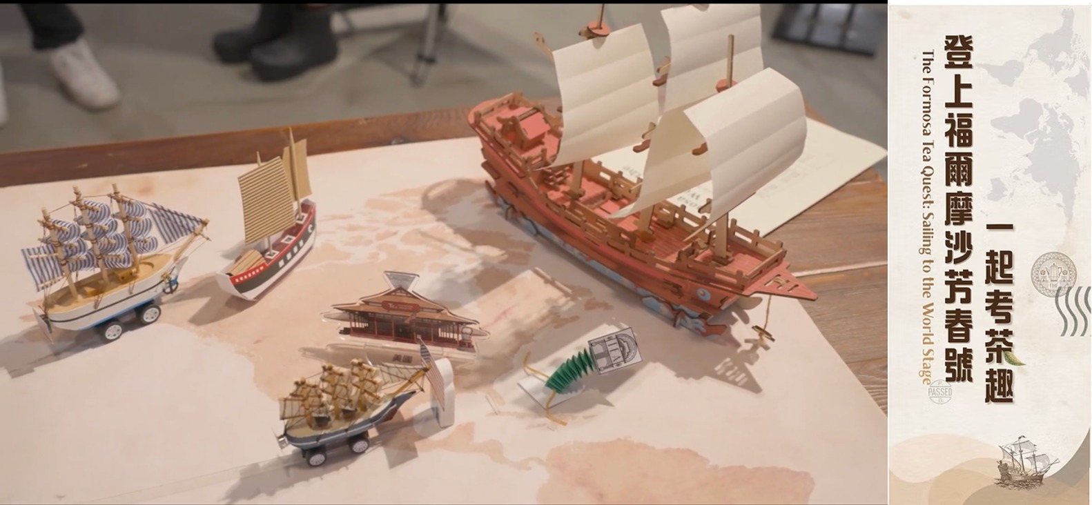 ▲圖說:《登上福爾摩沙芳春號:一起考茶趣》以遊戲化敘事帶領觀者航向台灣茶葉貿易的歷史舞台。圖/輔大進英四程于如、李淑敏、林依蒨、張慶彬、陳旻希