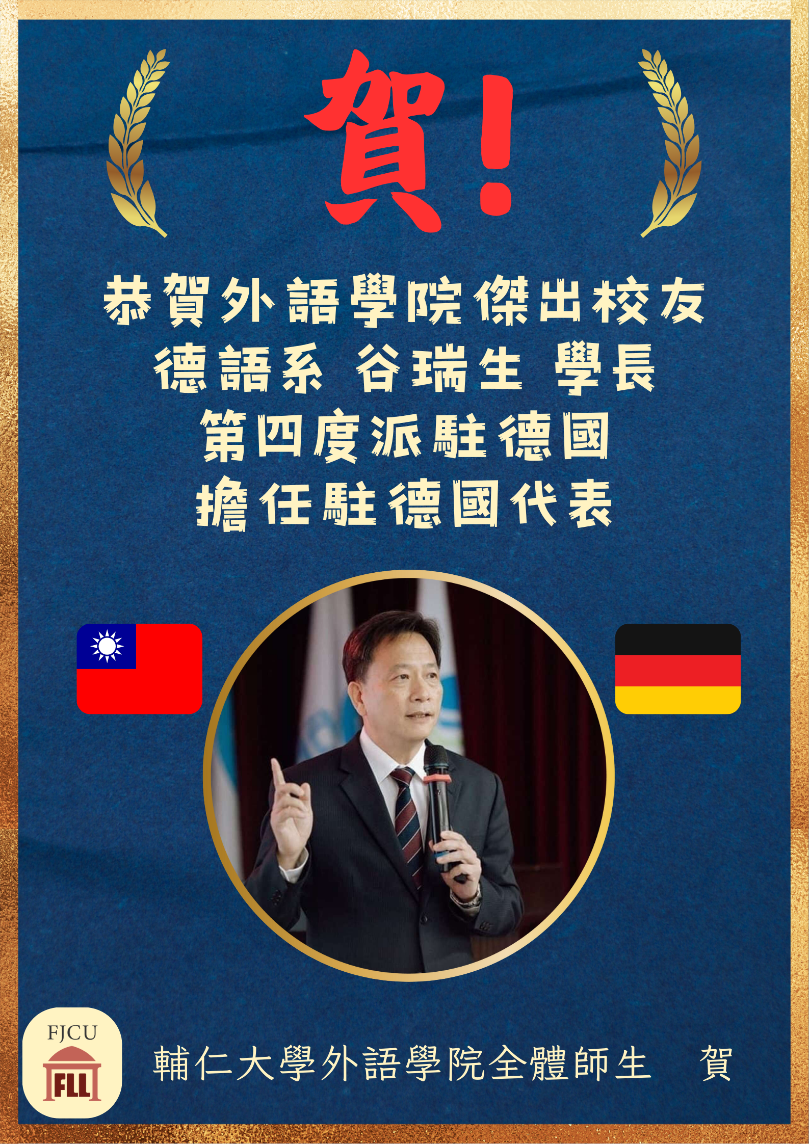 恭賀 ! 外語學院傑出校友德語系 谷瑞生 學長 第四度派駐德國 擔任駐德國代表